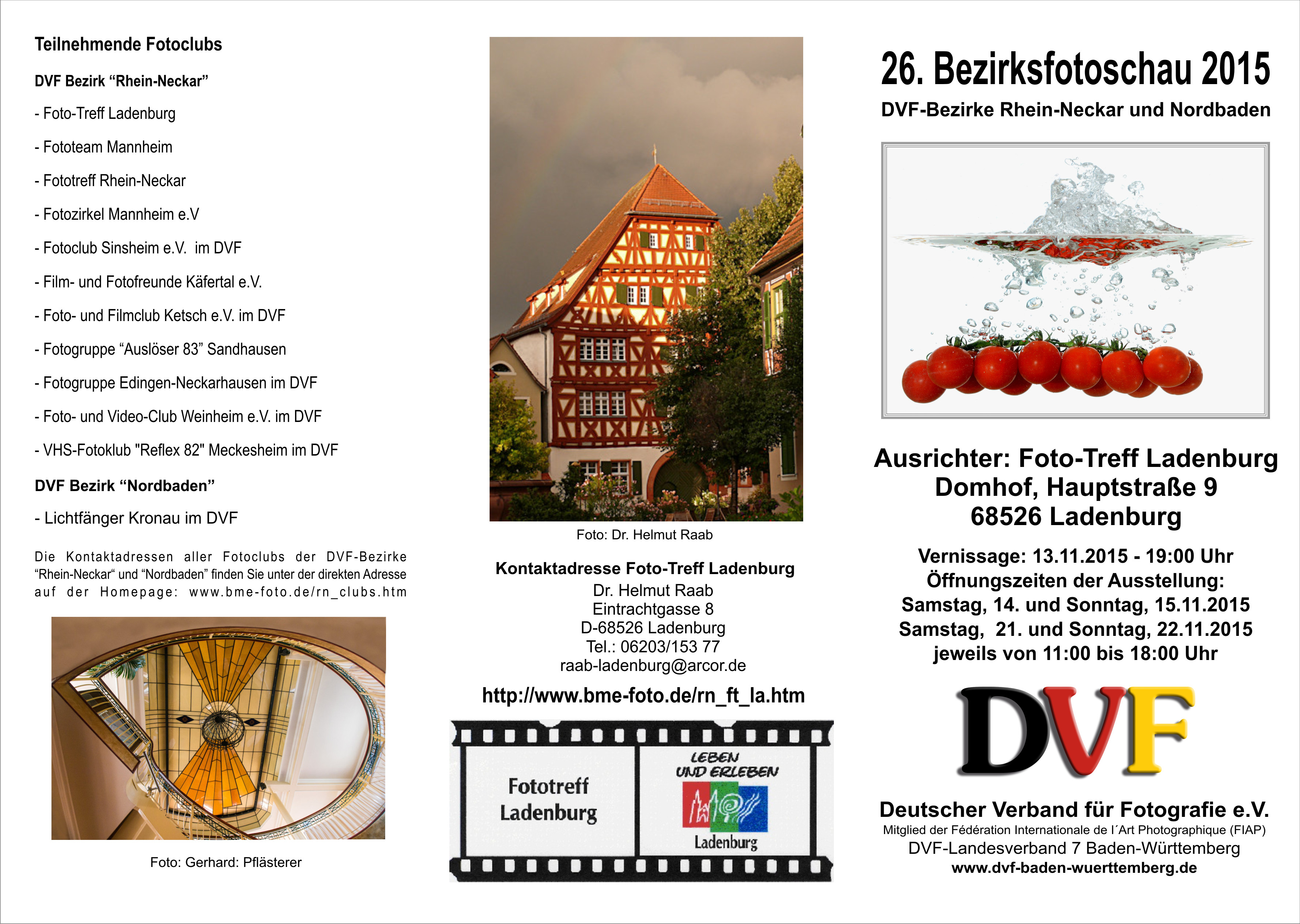 Der Fototreff Ladenburg hat die Ausrichtung der Bezirksfotoschau 2015 übernommen, hierfür herzlichen Dank.