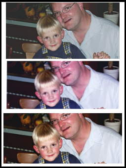 Bild 8 Entspricht das eben ausgedruckte Bild nicht Ihren Vorstellungen, dann laden Sie nun wieder das Bild 3 und verändern Farbe, Kontrast, Helligkeit usw. bis Sie meinen, daß die optimale Einstellung gefunden ist. Merken Sie sich unbedingt, die getätigten Veränderungen, damit Sie diese später beim Bearbeiten des ganzen Bildes wiederholen können. ![]() Speichern Sie dieses Bild wieder unter einem anderen Namen ab und wählen im Bildbearbeitungsprogramm die Funktion "KOPIEREN", öffnen das Bild 7 und wählen dann "EINFÜGEN" und platzieren den eben eingefügten Bildausschnitt unterhalb des Ersten. |